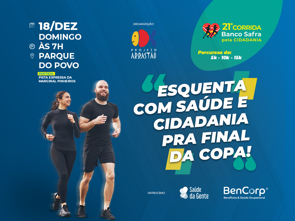 A 21ª Corrida Safra pela Cidadania de 2022 acontecerá 18 de dezembro, domingo, com provas para toda a família.